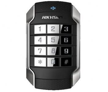 RFID считыватель DS-K1104MK, Протокол: RS-485, wiegand, Тип карт: Mifare, Подсветка синего цвета, DIP переключение, Функция Watch dog, Звуковой сигнал, Накладной монтаж, Кодовая клавиатура, IP65